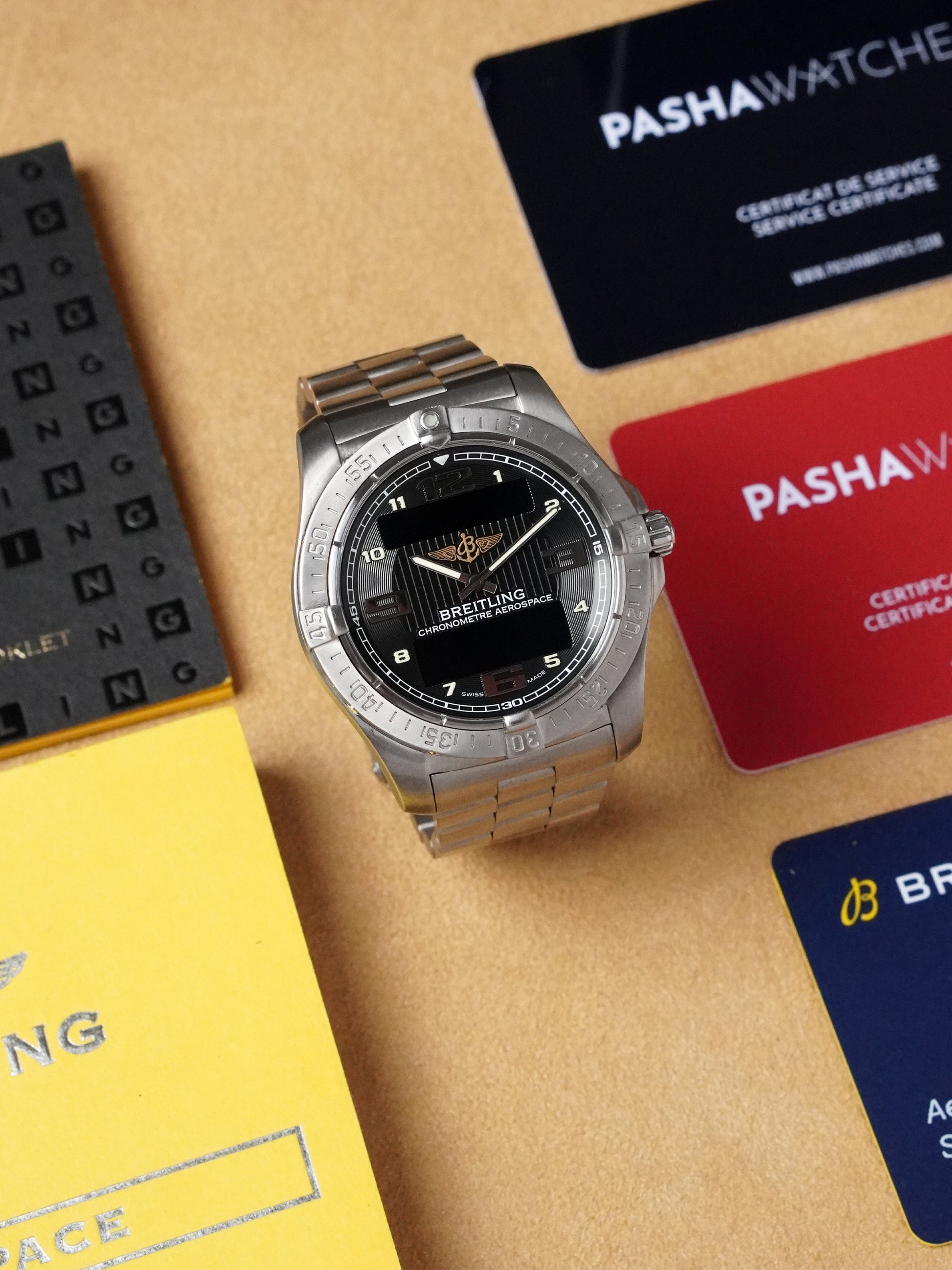 This example is in excellent condition and comes as a complete Full Set: original Breitling outer box, presentation box, travel case, manual, documents holder, International Warranty booklet, International Warranty card, and original case back sticker. A particularly interesting detail is that the watch was manufactured in 2015 but sold by an authorized dealer only in 2021, adding an attractive provenance element. It was fully serviced by our in-house certified watchmaker on 24.02.2026, with an additional service receipt dated 29.08.2025, including a waterproof test check. Included are the PW Service Card and PW Certificate of Authenticity.