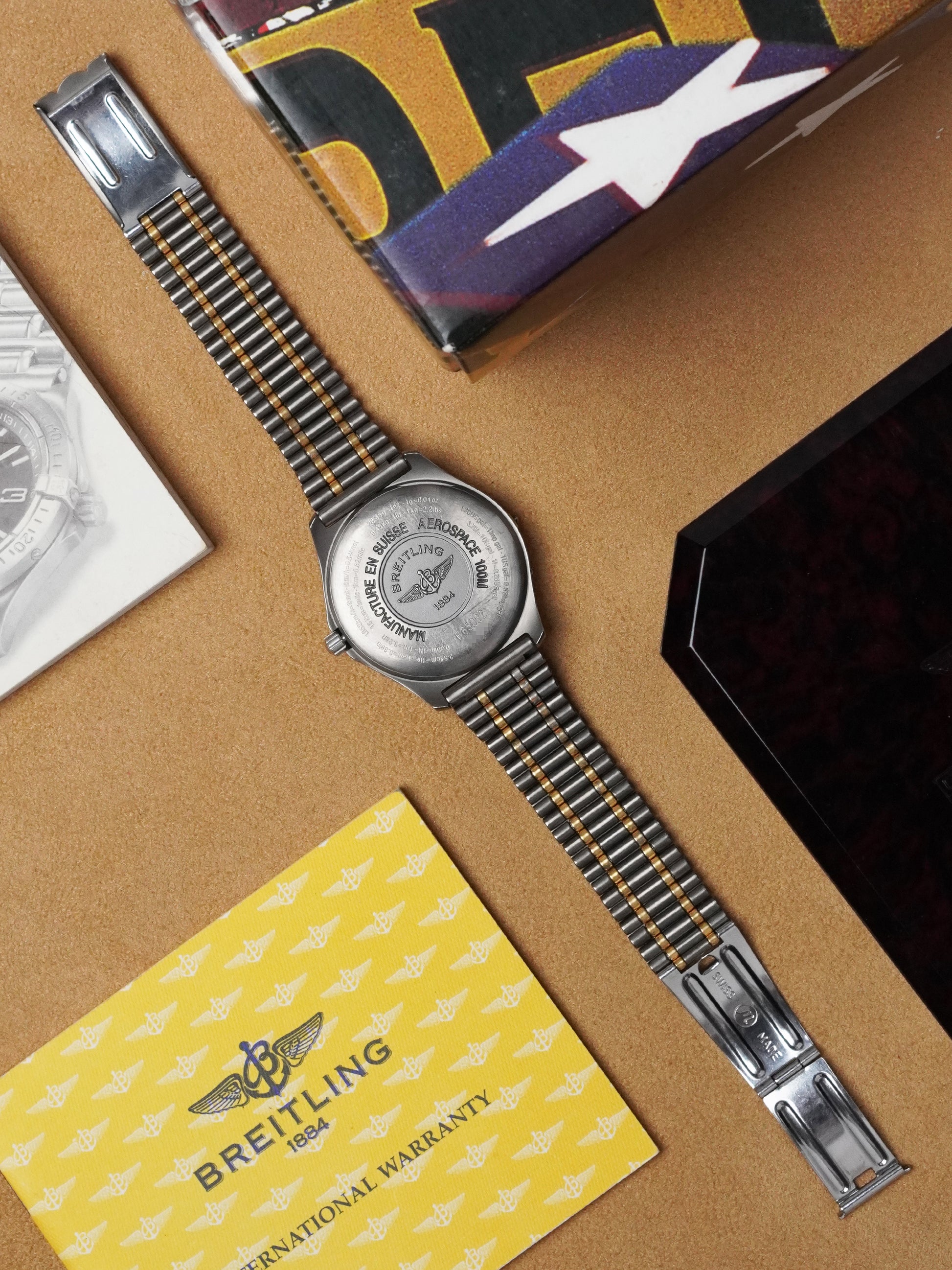 A superb opportunity to acquire a rare two-tone Aerospace — combining luxury materials, professional functionality, and iconic 1990s Breitling design in a complete collector’s set.