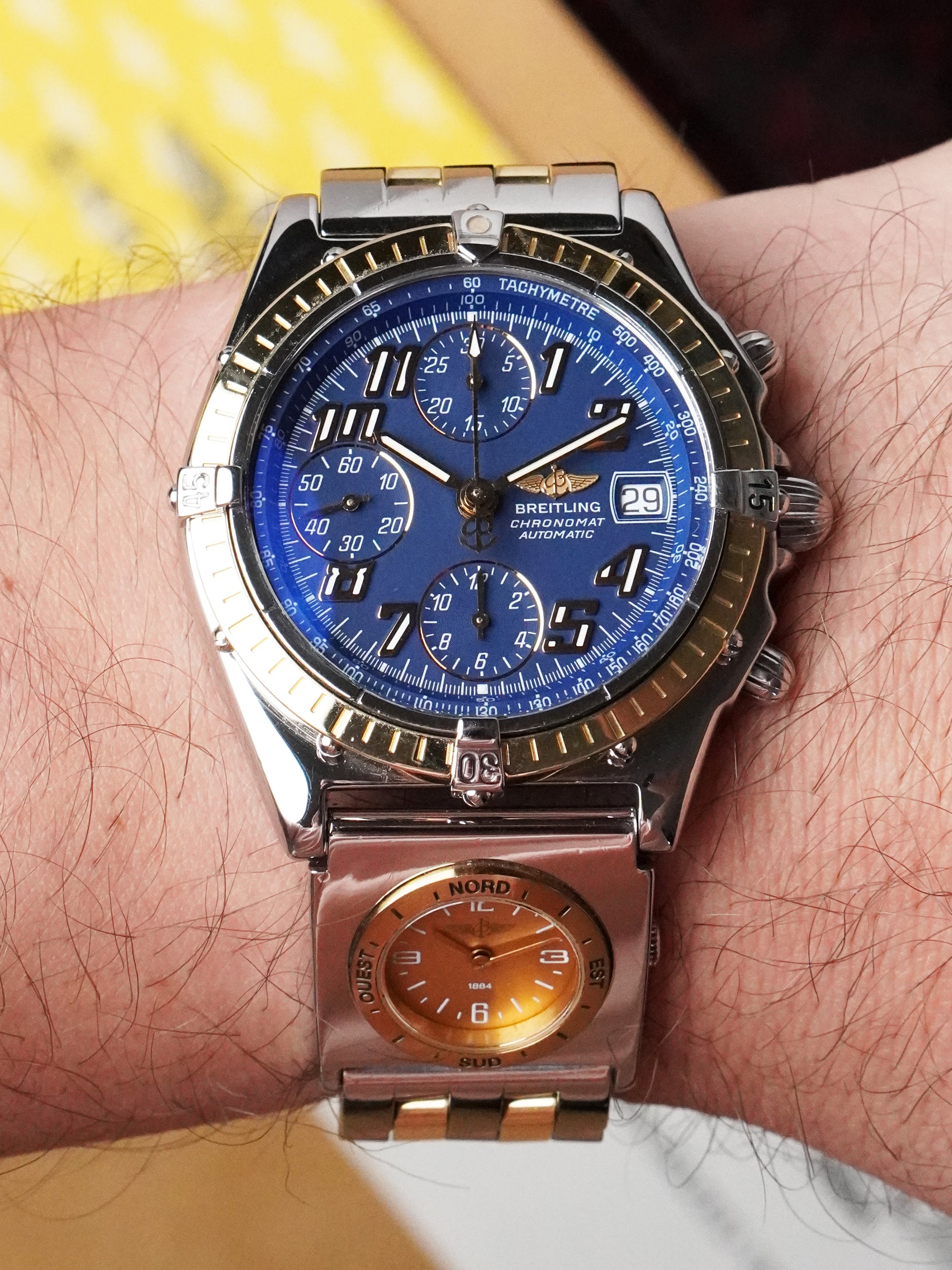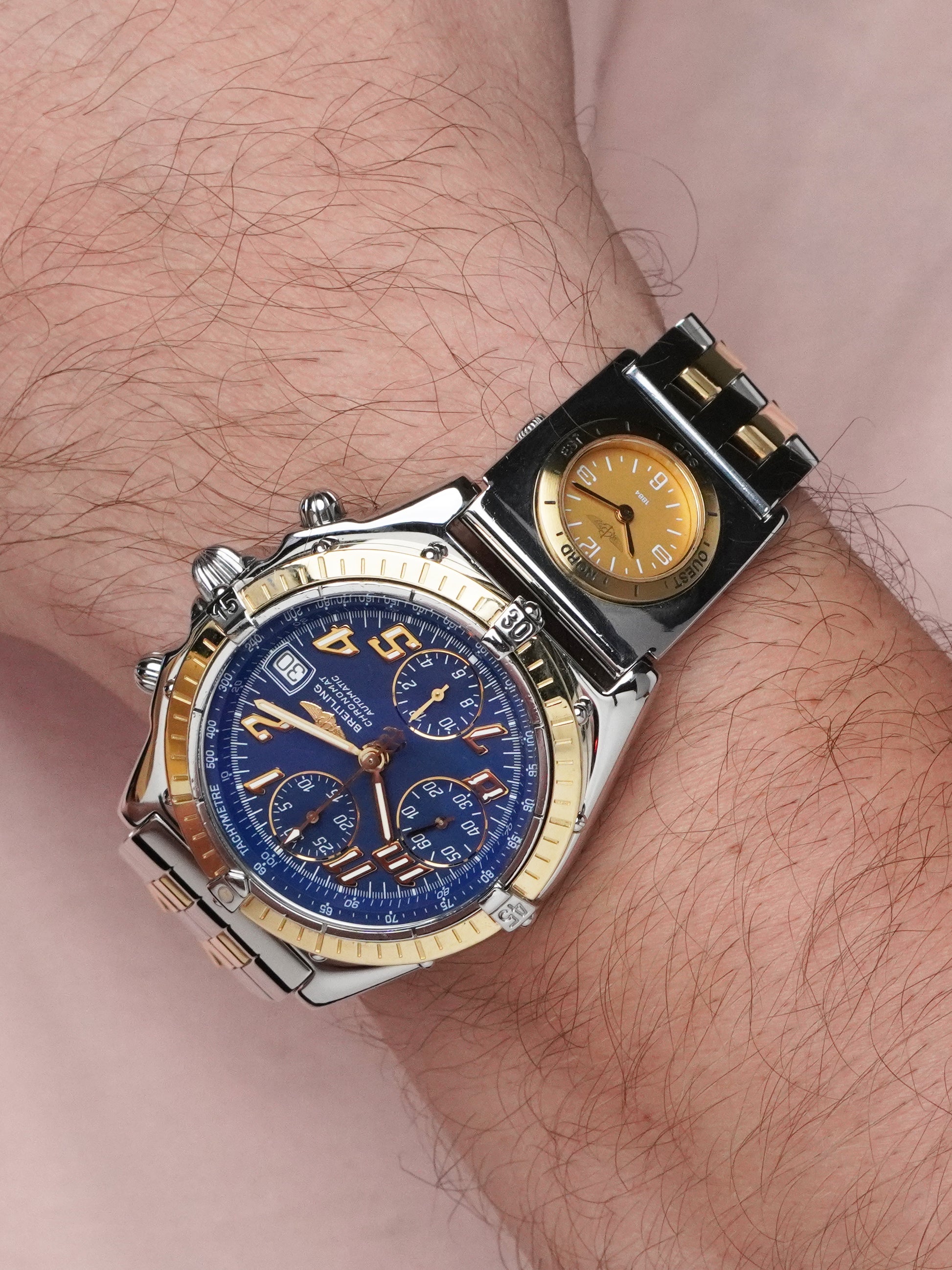 A rare opportunity to acquire a single-owner, complete, two-tone Chronomat with UTC—a standout from Breitling’s 1990s golden era.