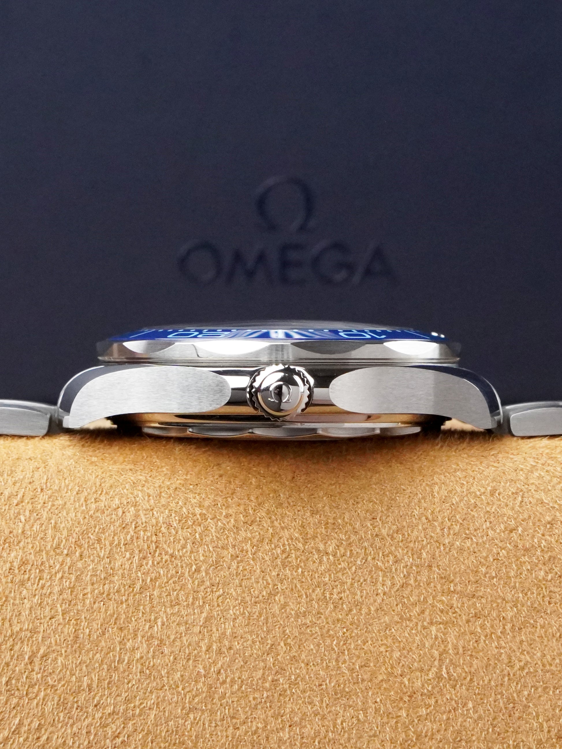 This example is in excellent condition, carefully checked by our in-house Omega-certified watchmaker, and comes as a complete full set. Included are the original special edition outer box, presentation box, travel box, card holder, international warranty book, and Omega warranty card dated 10.02.2024, with active Omega factory warranty valid until February 2029.