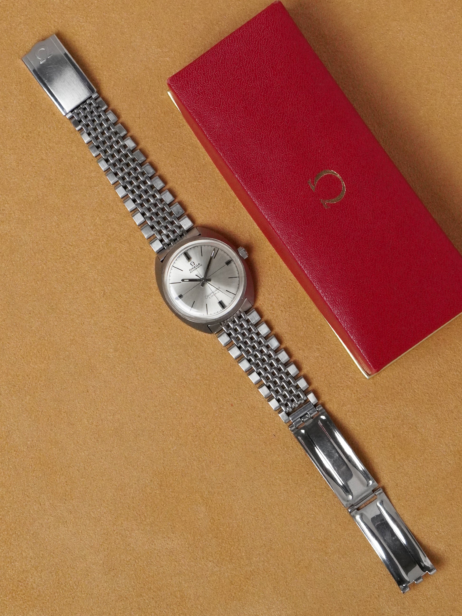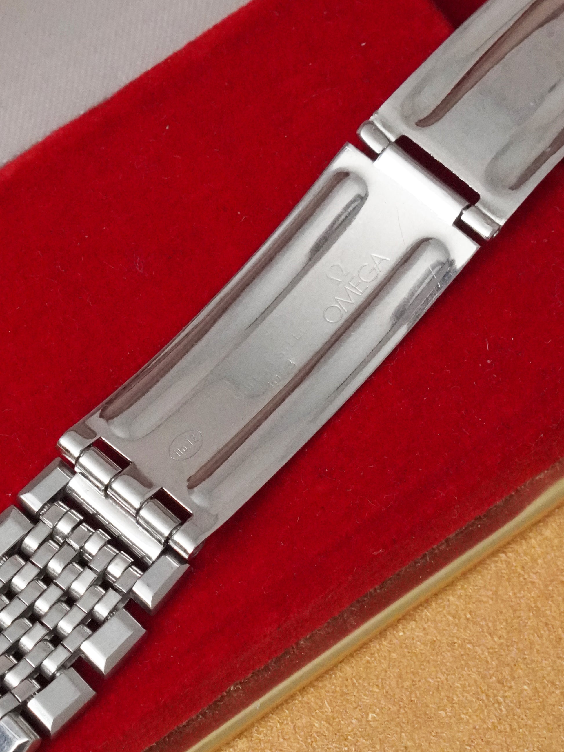 The watch is paired with the iconic Omega beads of rice bracelet (ref. 1068) with correct 523 end links, also in very good condition and suitable for wrists up to 17.5 cm. This vintage bracelet enhances both the comfort and aesthetics of the watch, echoing the seamless, integrated feel that defined the Cosmic line.