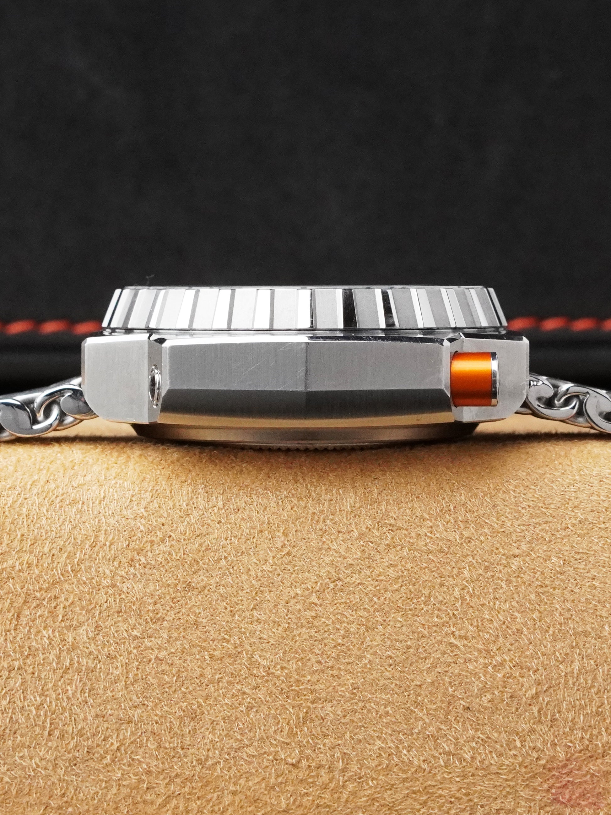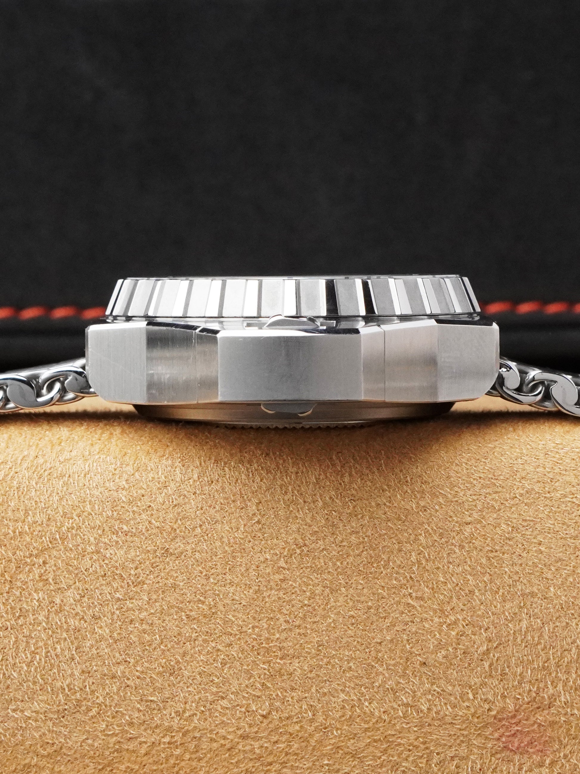 At 55 × 48 mm in stainless steel with a helium escape valve, bezel lock pusher, and Calibre 8500 Co-Axial movement (60-hour power reserve), the Ploprof remains one of the most capable professional dive watches ever built. A complete collector’s set of a modern icon.