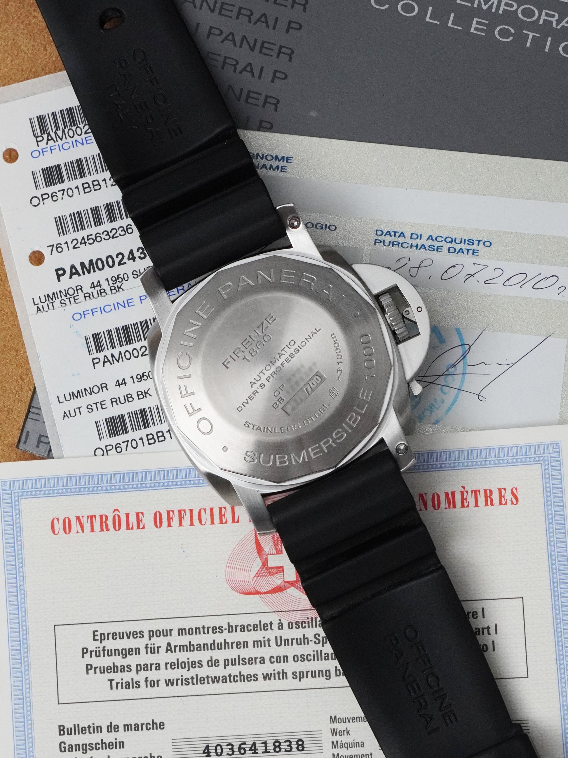 The PAM 243 has become one of the most collectible modern Submersibles, with its Tritium dial, limited 700-piece production, and complete provenance making it a standout piece for serious Paneristi and collectors of professional dive watches.