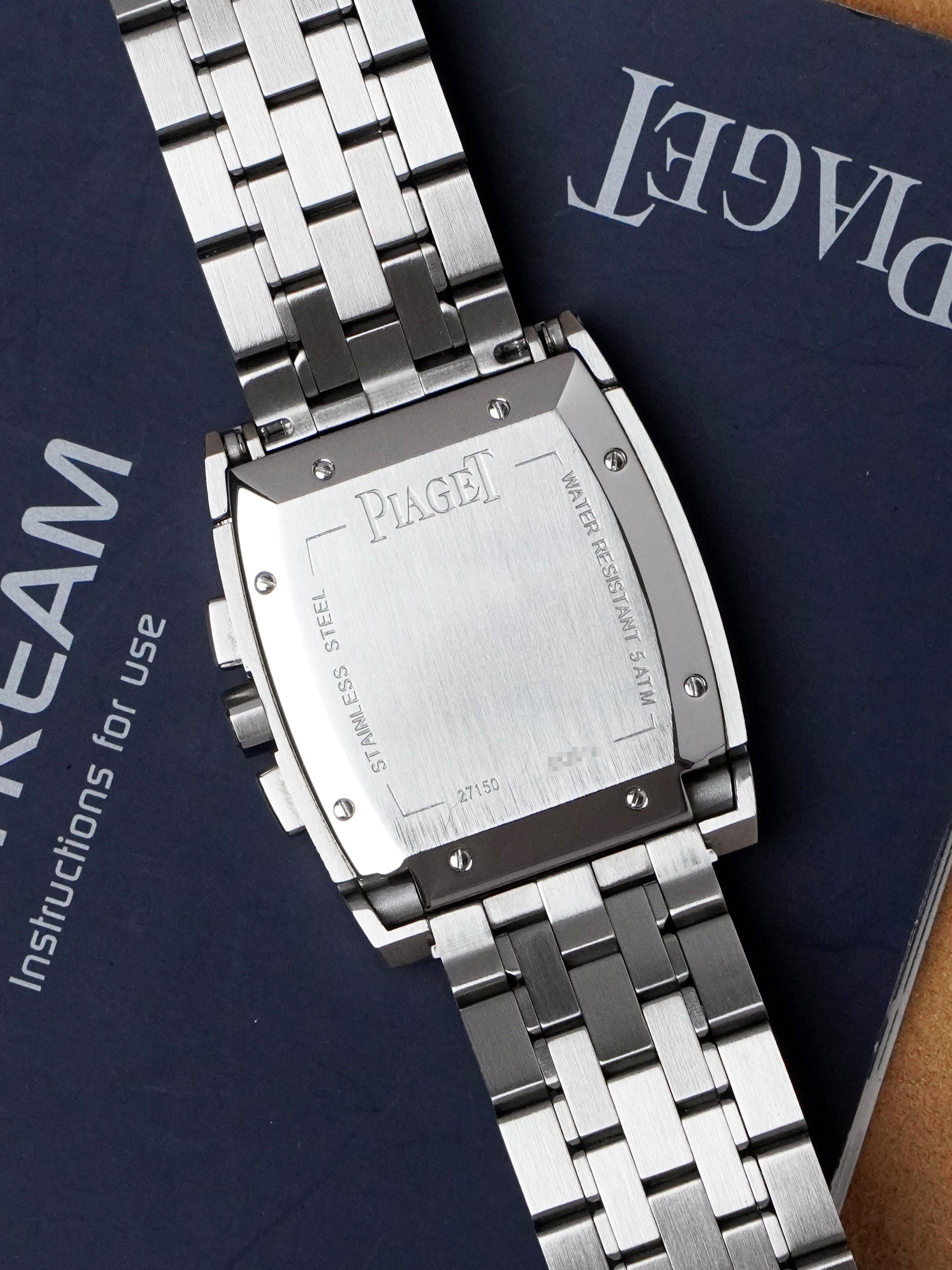 A bold expression of Piaget’s early-2000s design language, the Piaget Upstream Ref. 27150 stands out as one of the maison’s most distinctive modern creations. Introduced at the turn of the millennium, the Upstream reimagined the luxury sports watch with an architectural tonneau case, integrated bracelet, and Piaget’s innovative clasp-and-bezel construction—instantly recognisable and unmistakably Piaget.
