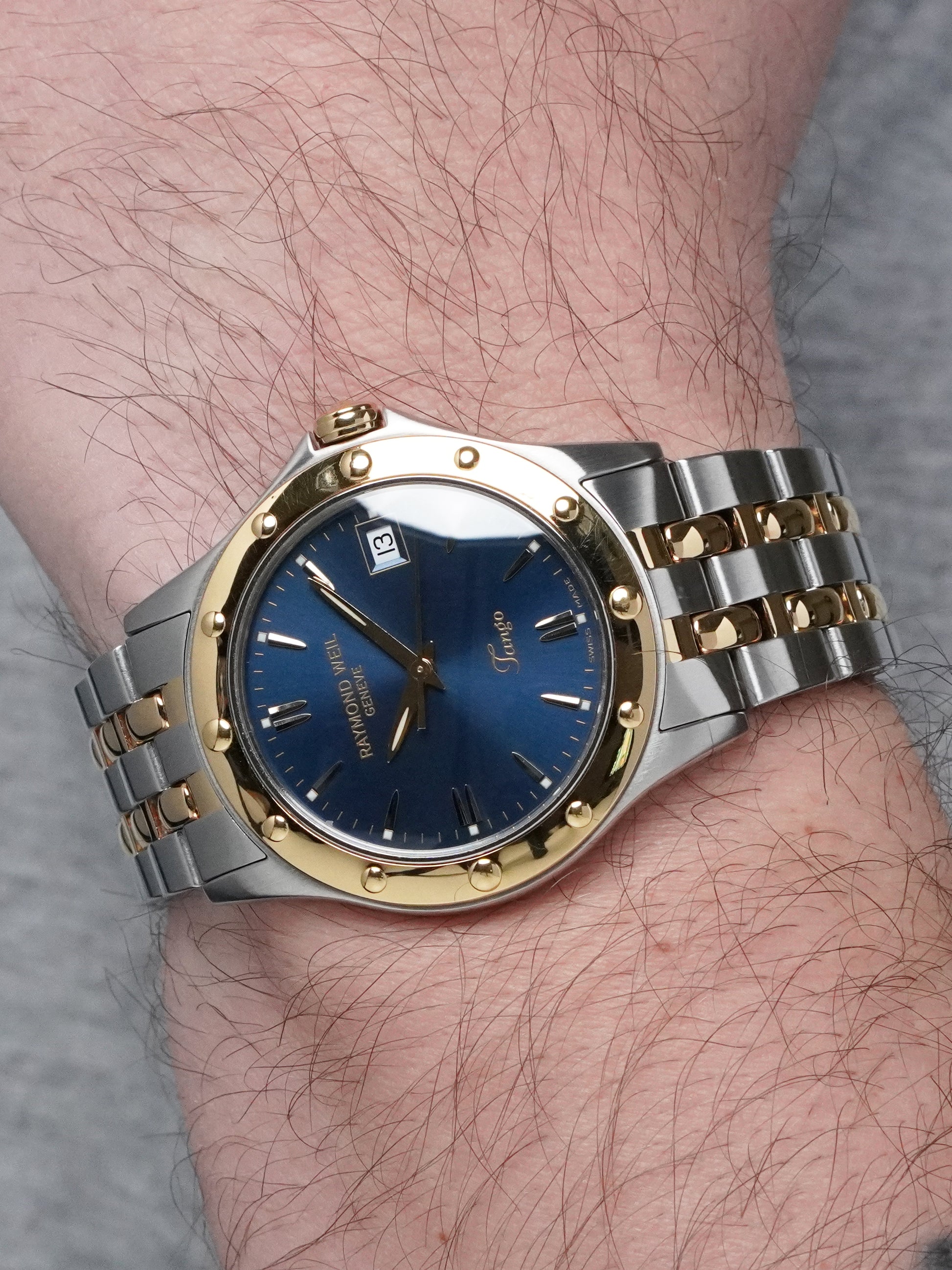 A refined expression of Raymond Weil’s elegant design language, the Tango Ref. 5590 blends Swiss precision with a timeless two-tone aesthetic. Introduced in the mid-2000s as part of the brand’s signature Tango collection, this model is admired for its balanced proportions, comfortable wear, and classical styling — making it an ideal everyday luxury watch.