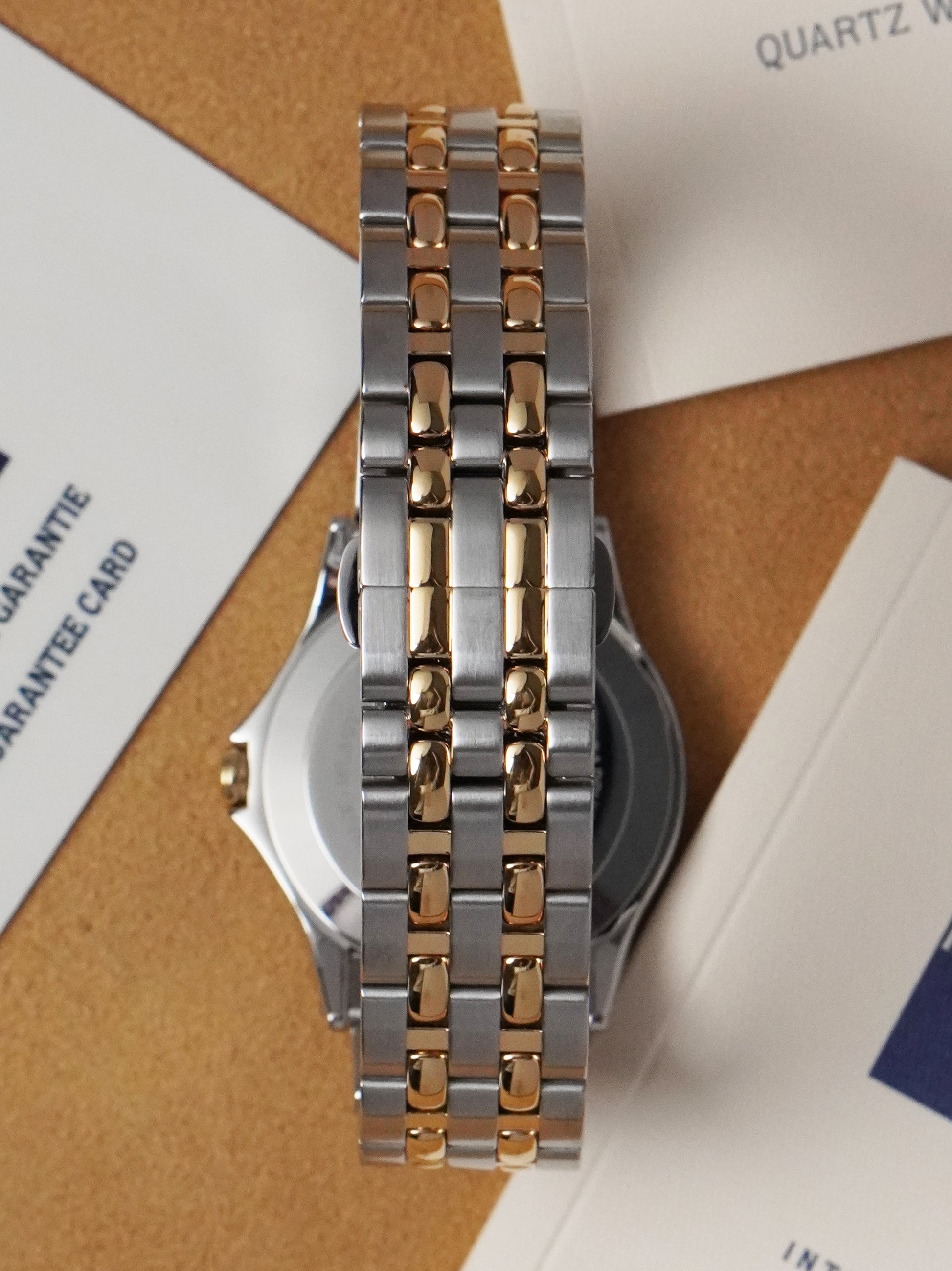 The two-tone steel and gold-plated bracelet fits wrists up to 21 cm, offering both comfort and visual appeal. The watch has been fully checked by our certified watchmaker, fitted with a new battery, and is functioning flawlessly.