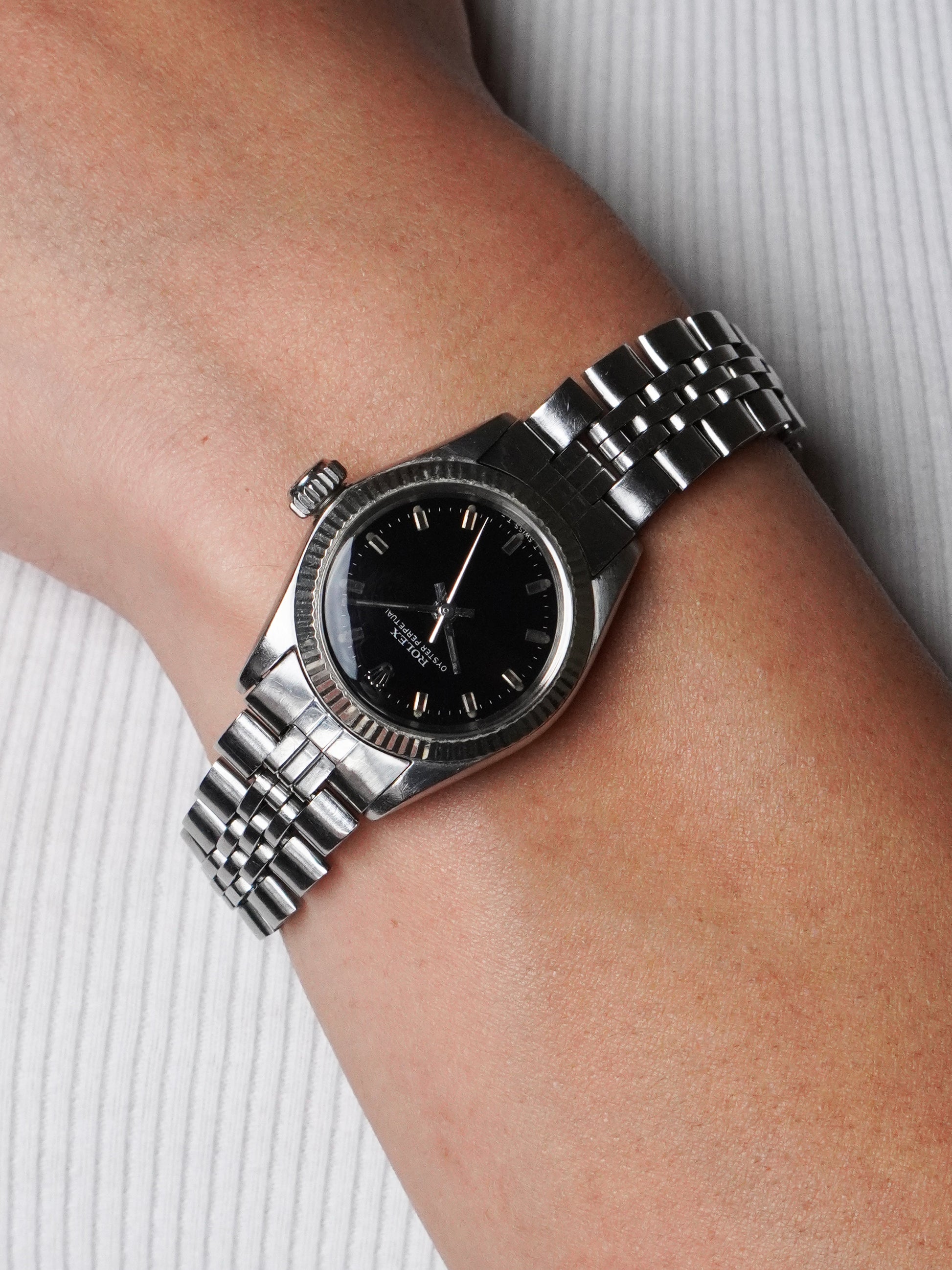 With its period-correct originality, black dial, and excellent service history, this 1970 Rolex Oyster Perpetual Ref. 6619 is a timeless vintage piece that perfectly blends daily wearability with strong collector appeal.